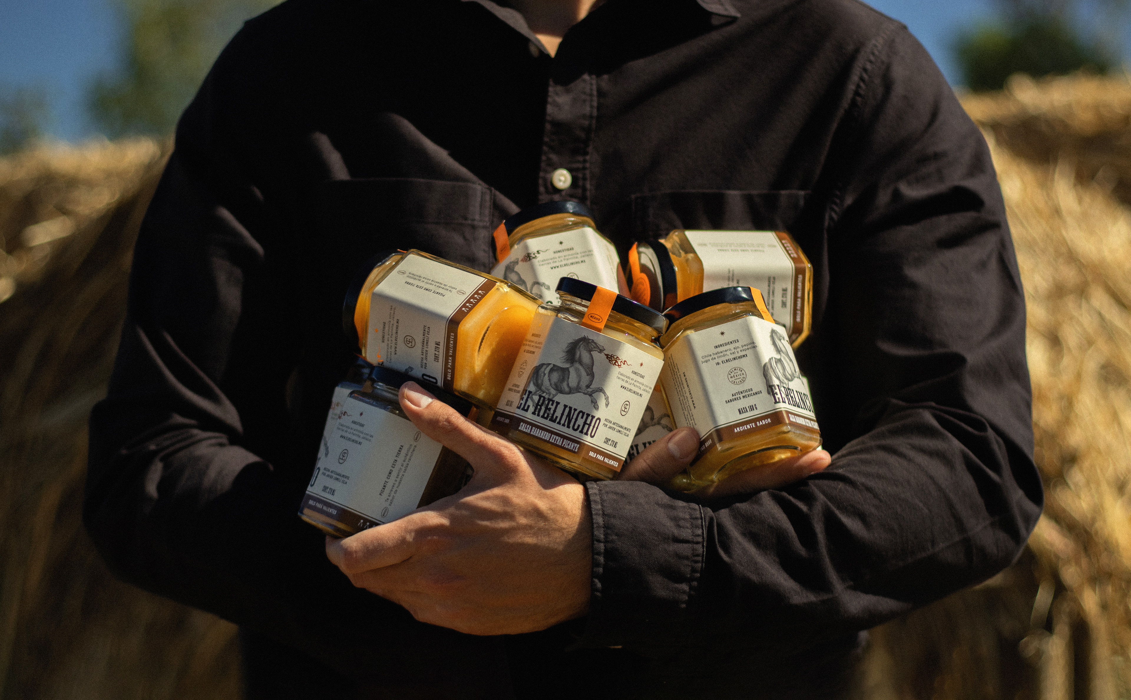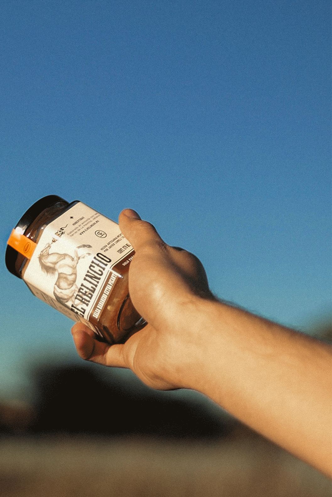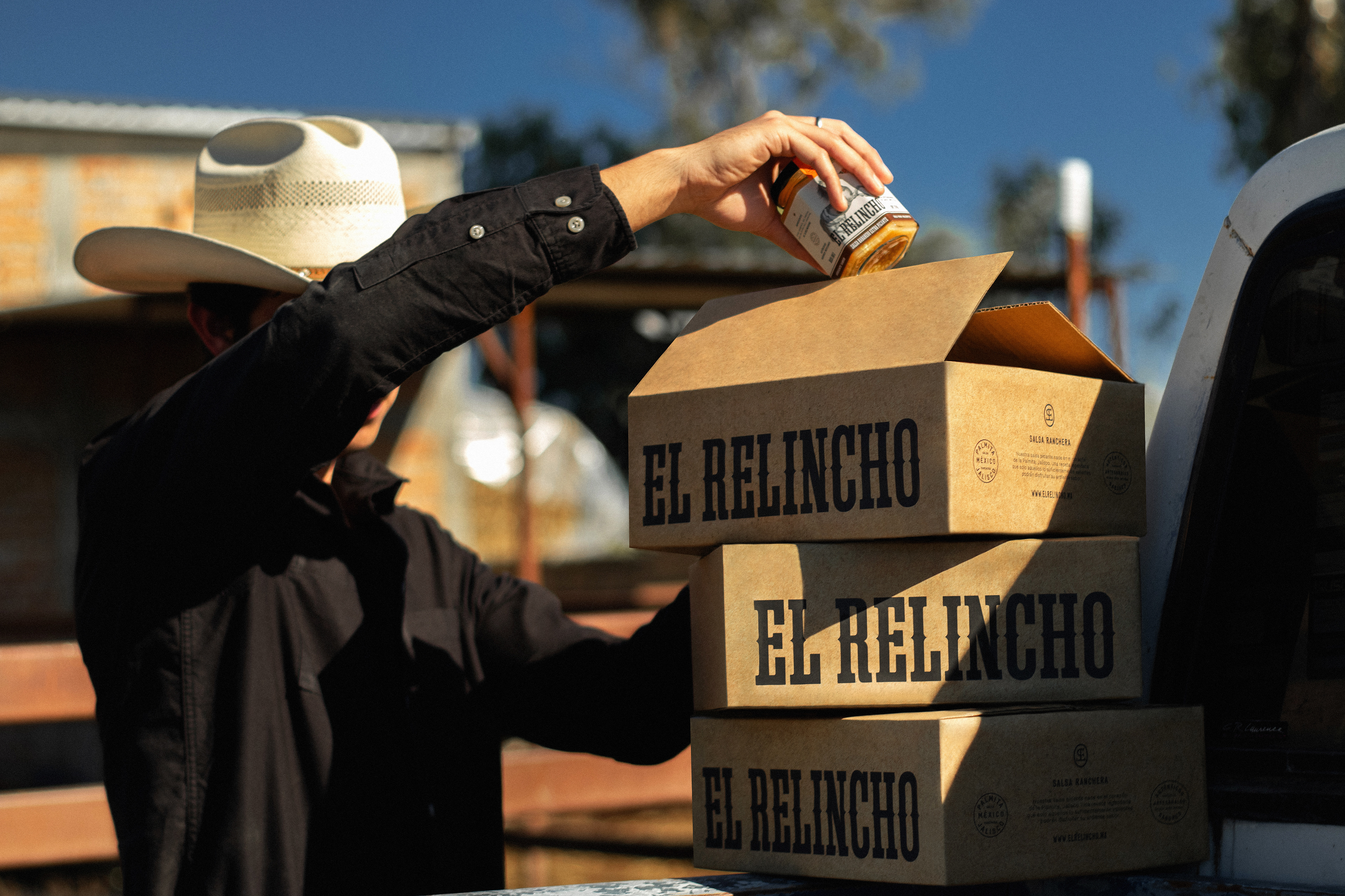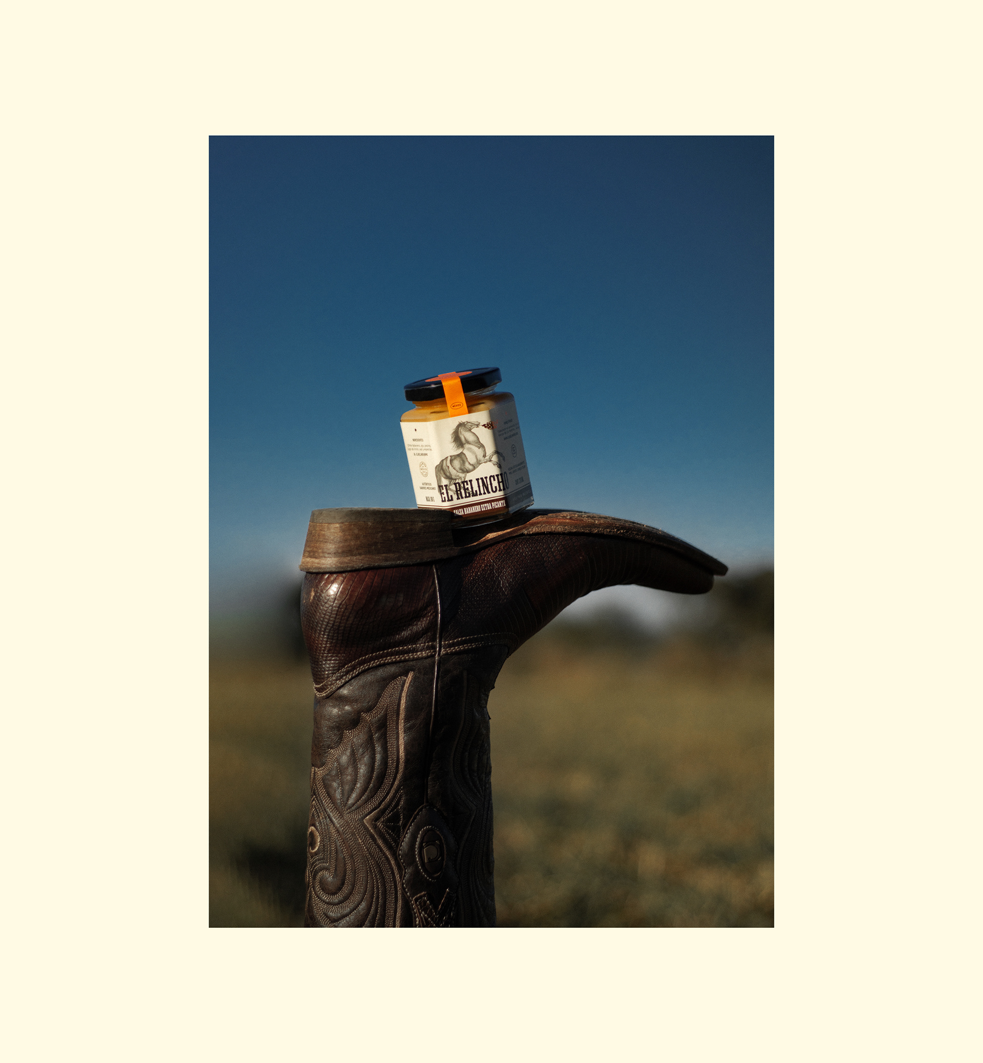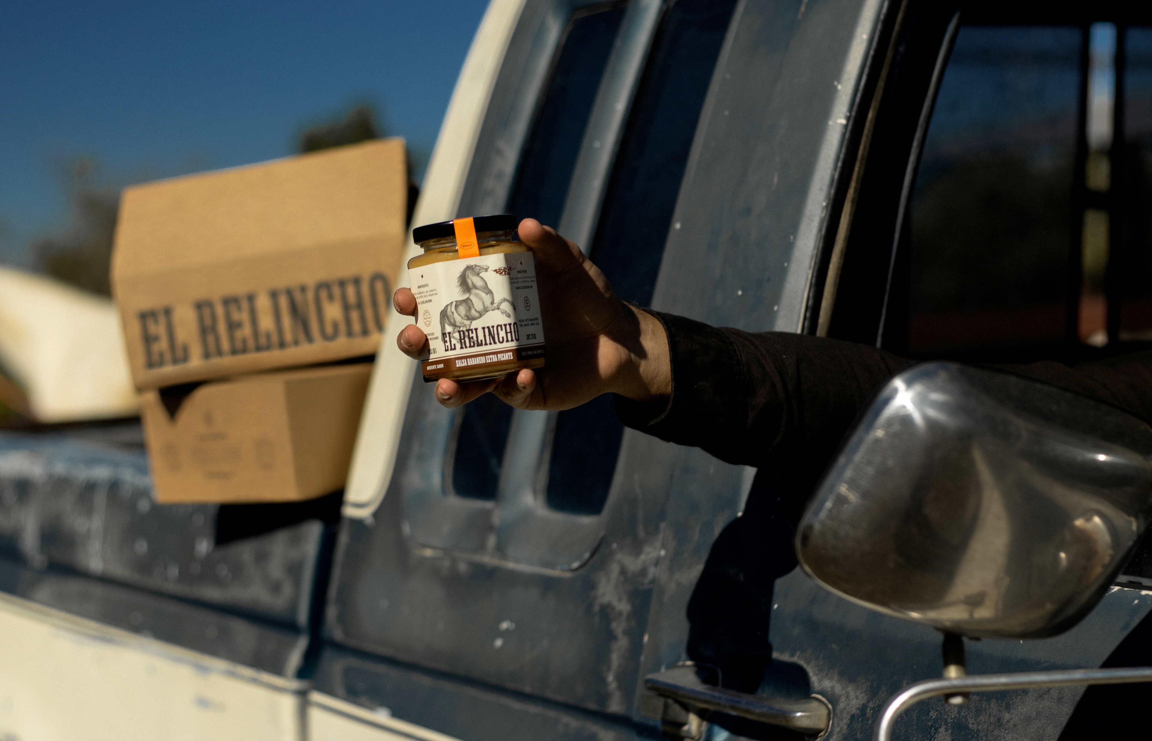 El Relincho es una salsa picante artesanal de habanero que nace en el corazón de La Palmita, Jalisco. Esta salsa captura el espíritu indomable y el legado vaquero de su creador Javier Lomelí Ceja, una creación emblemática que desafía los paladares más valientes y evoca la riqueza de las raíces mexicanas. En la búsqueda de reflejar esta herencia se creó una identidad visual basada en una ilustración del primer caballo de Javier: un pinto que en postura desafiante y acompañado de una llama simbolizan la intensidad de su sabor. Es así como el logotipo de El Relincho con una estética vaquera se justifica como una extensión natural de su identidad y origen al representar el espíritu de La Palmita, Jalisco, un pueblo donde los caballos, las sogas y la vida ranchera son el núcleo de las tradiciones familiares.