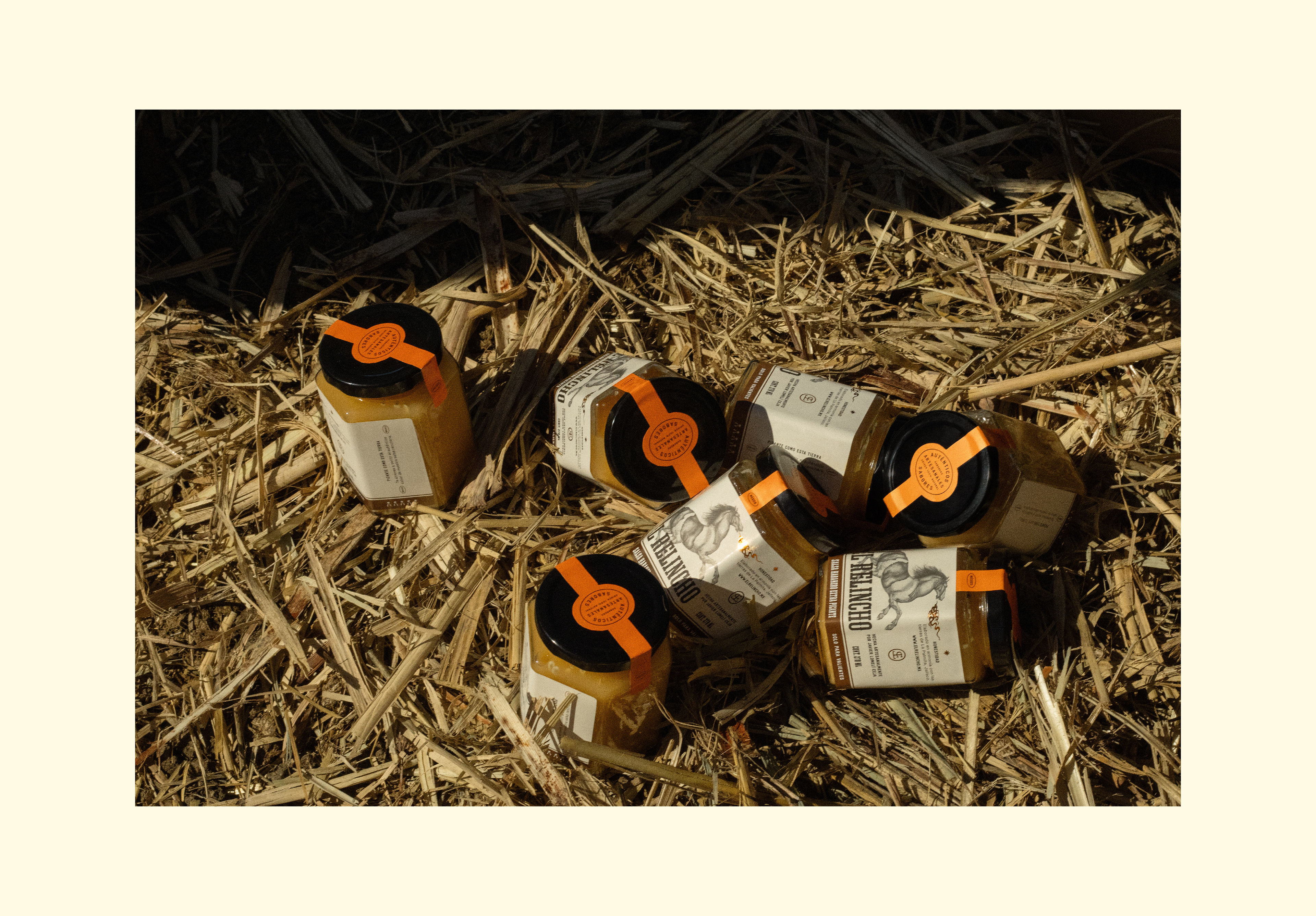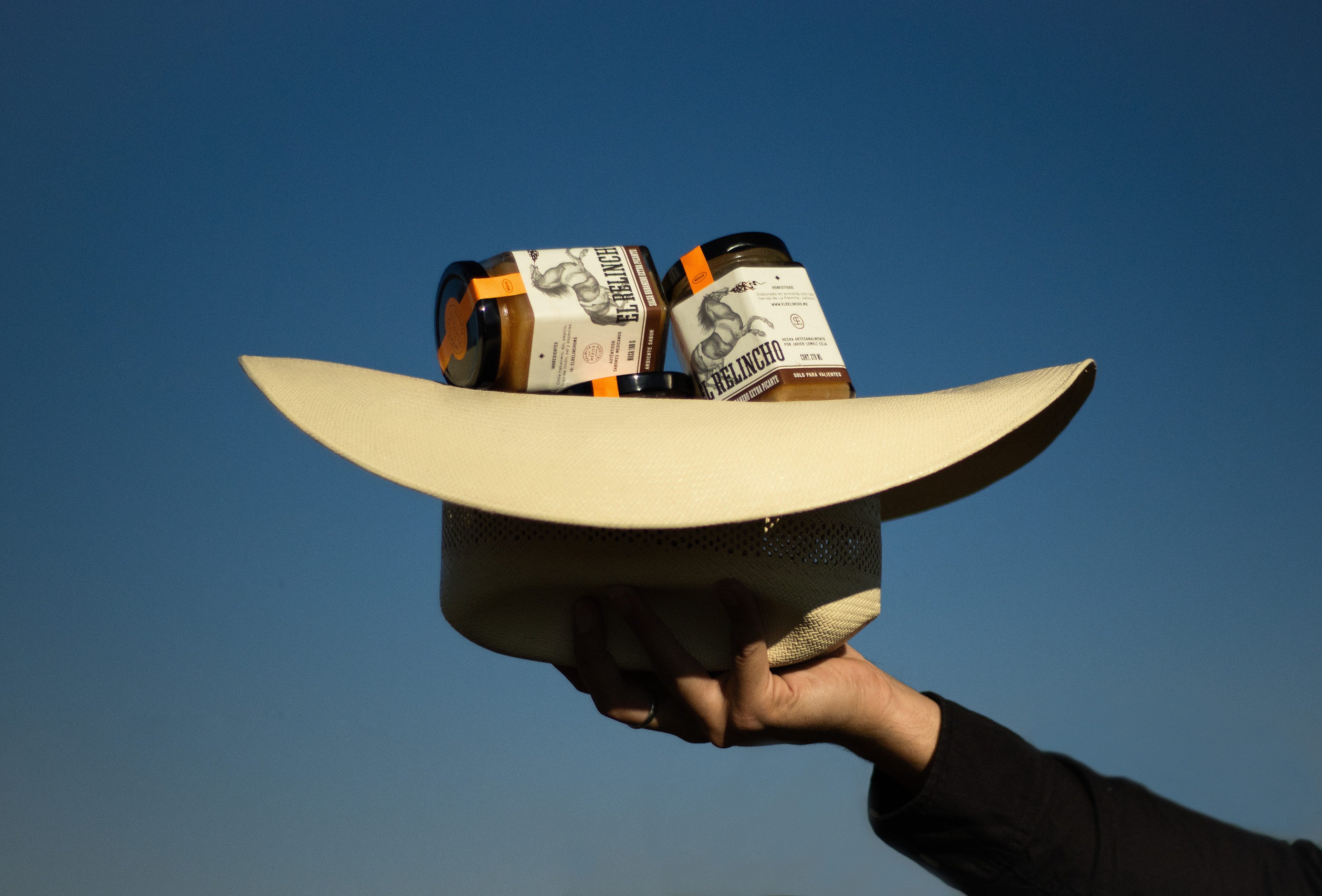 El Relincho is an artisanal habanero hot sauce born in the heart of La Palmita, Jalisco. This sauce embodies the indomitable spirit and cowboy heritage of its creator, Javier Lomelí Ceja. This iconic creation challenges the boldest palates and celebrates the richness of Mexican roots. To honor this heritage, a visual identity was crafted around an illustration of Javier’s first horse—a pinto in a defiant stance, accompanied by a flame that symbolizes the sauce’s fiery intensity. The western-inspired logo of El Relincho is a natural extension of its identity and origin, reflecting the essence of La Palmita, Jalisco—a town where horses, ropes, and ranch life are the foundation of family traditions.