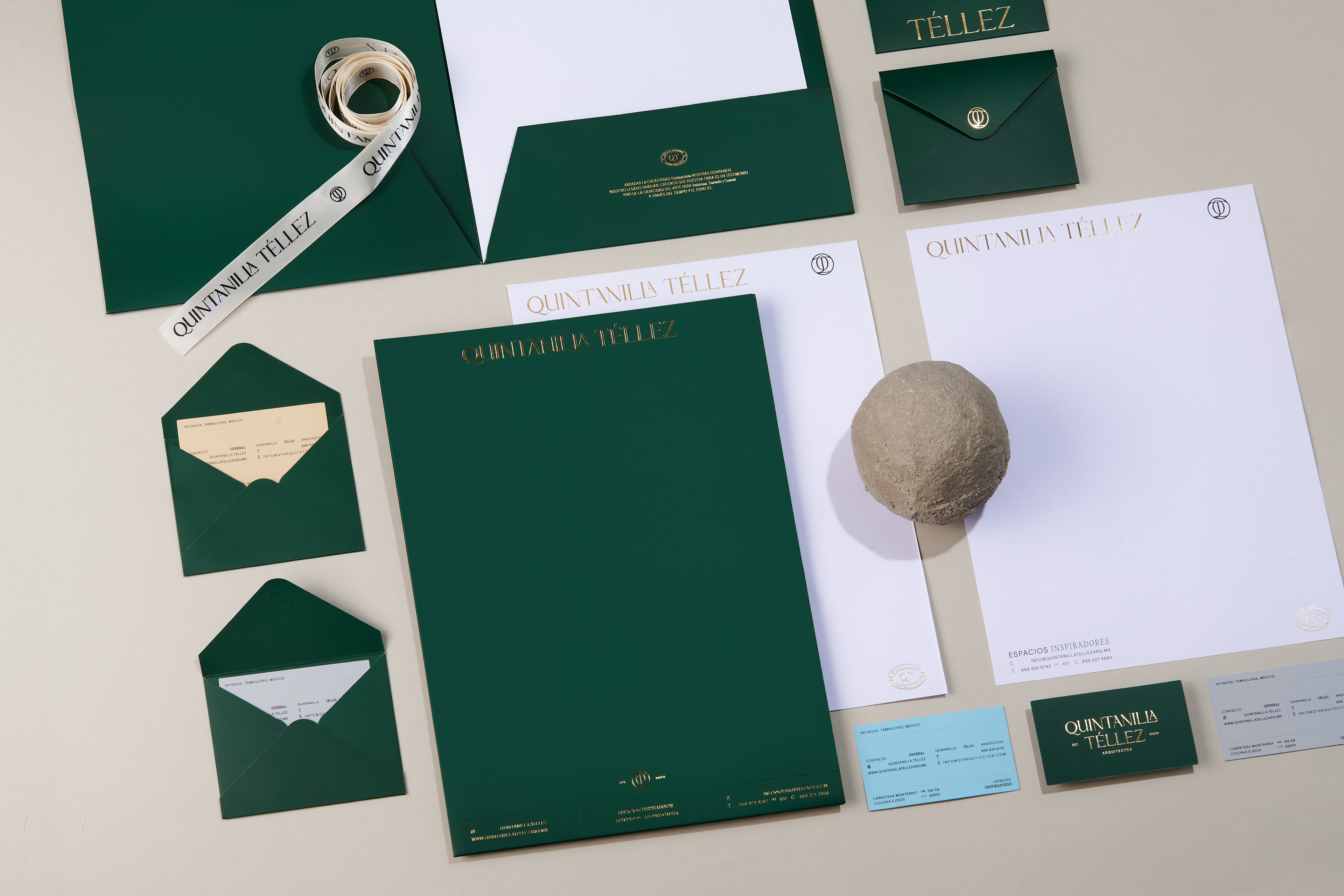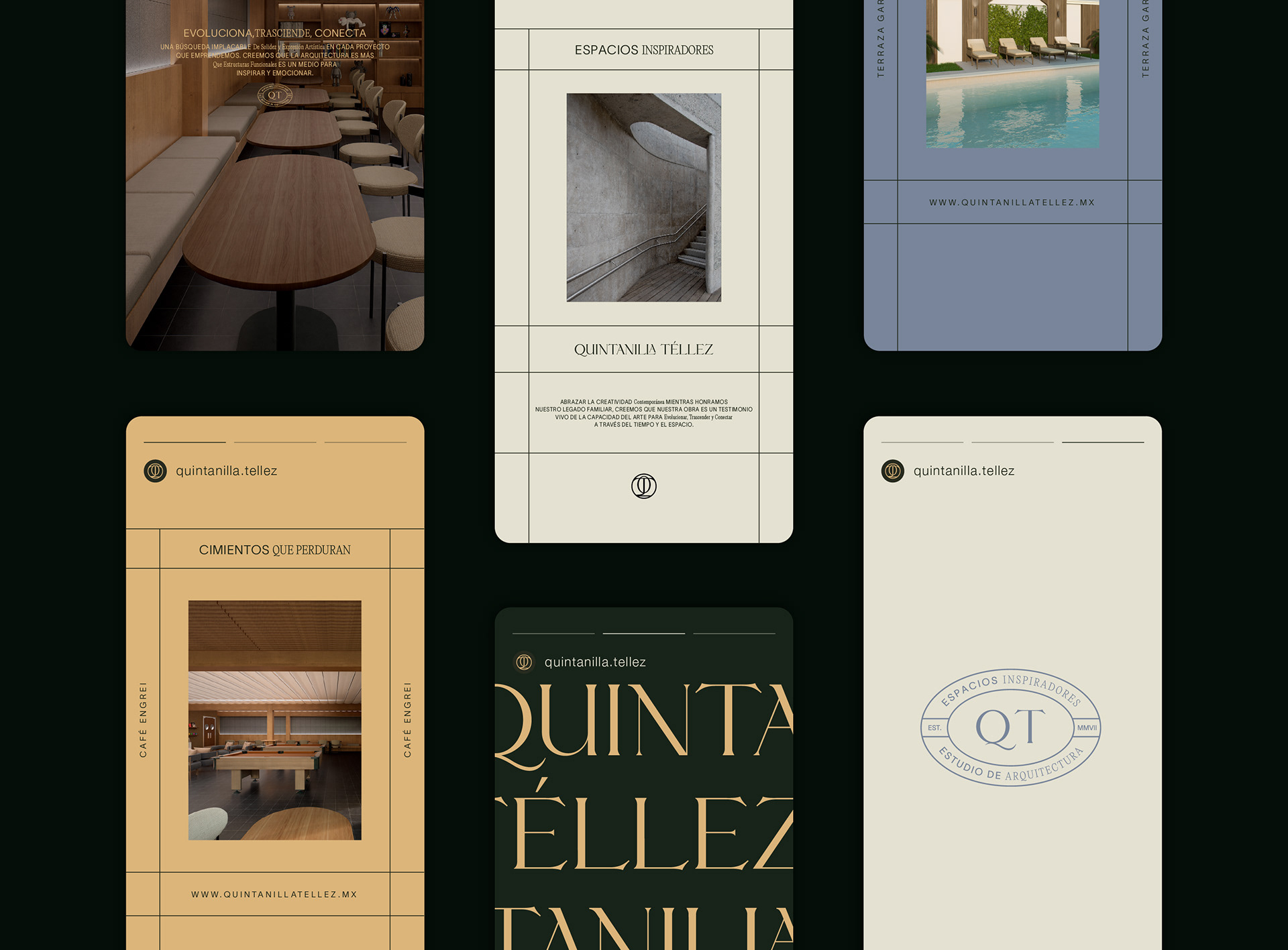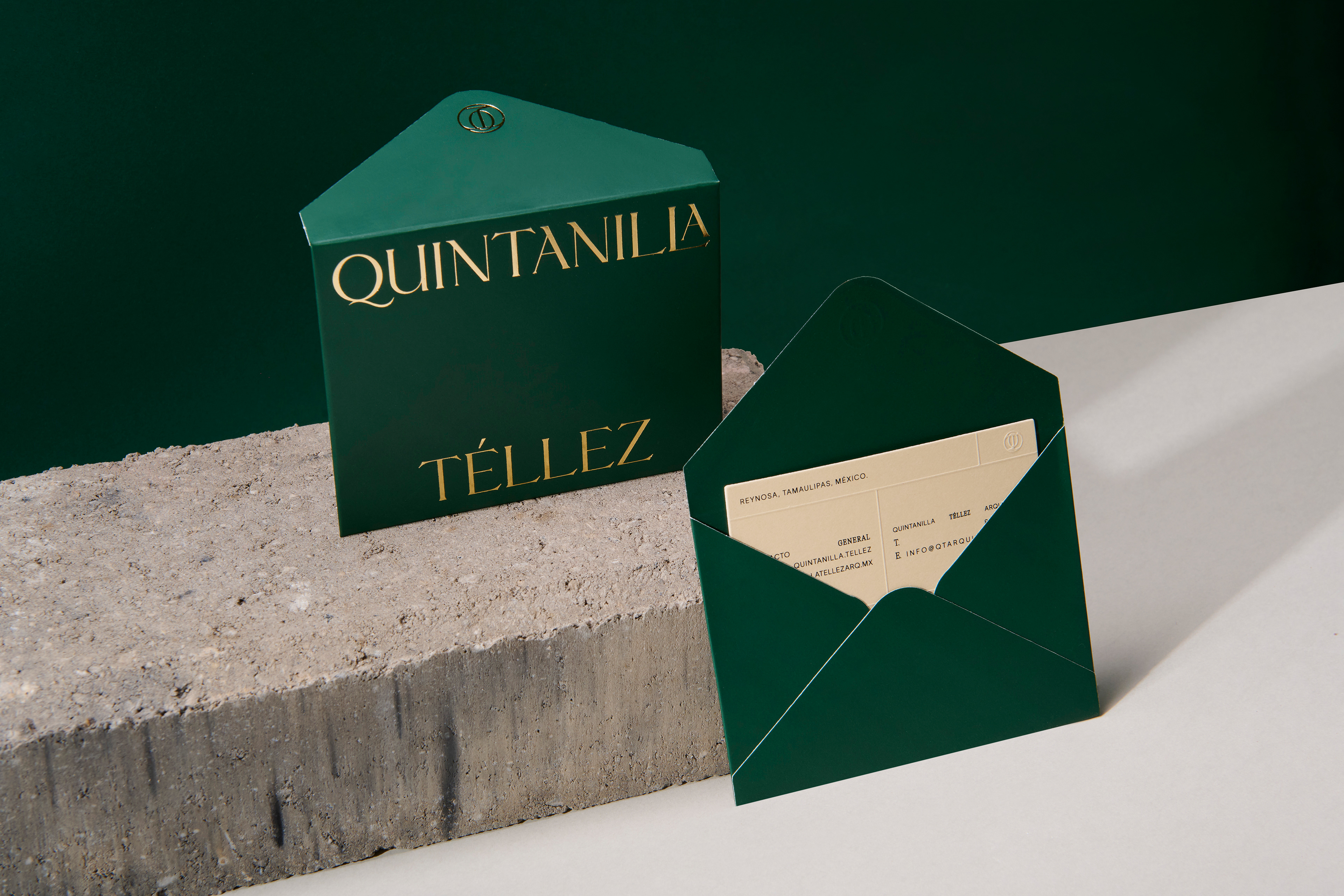 Quintanilla Téllez is an architecture studio based in Tamaulipas, Mexico, where the profession intertwines with a contemporary vision of space. The identity project sought to build a solid brand—one that honors its legacy while opening the door to artistic projects and more expressive architectural narratives. The aim was to transform its visual presence into a language that respects tradition while confidently pointing toward new horizons.