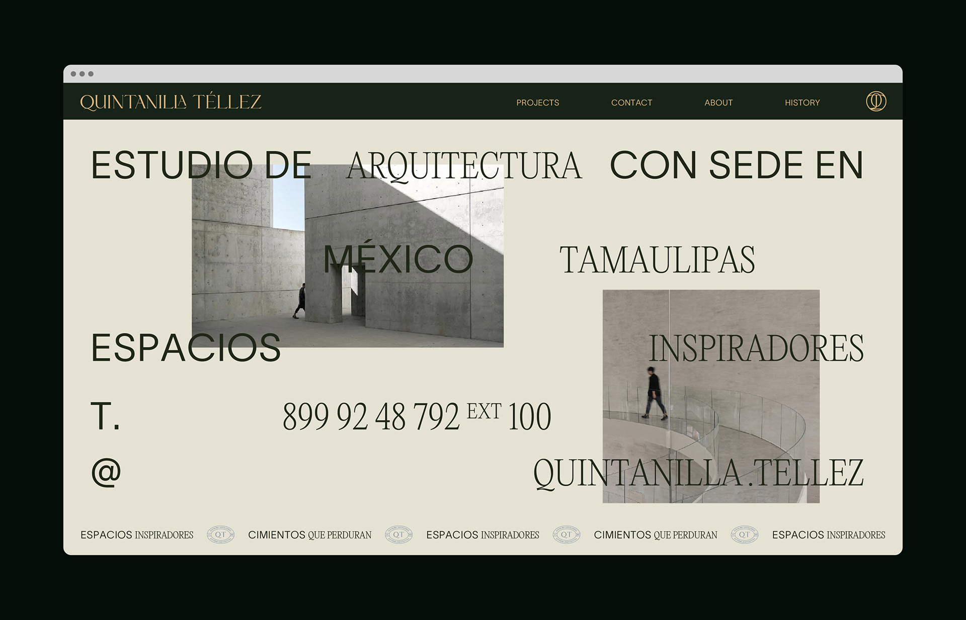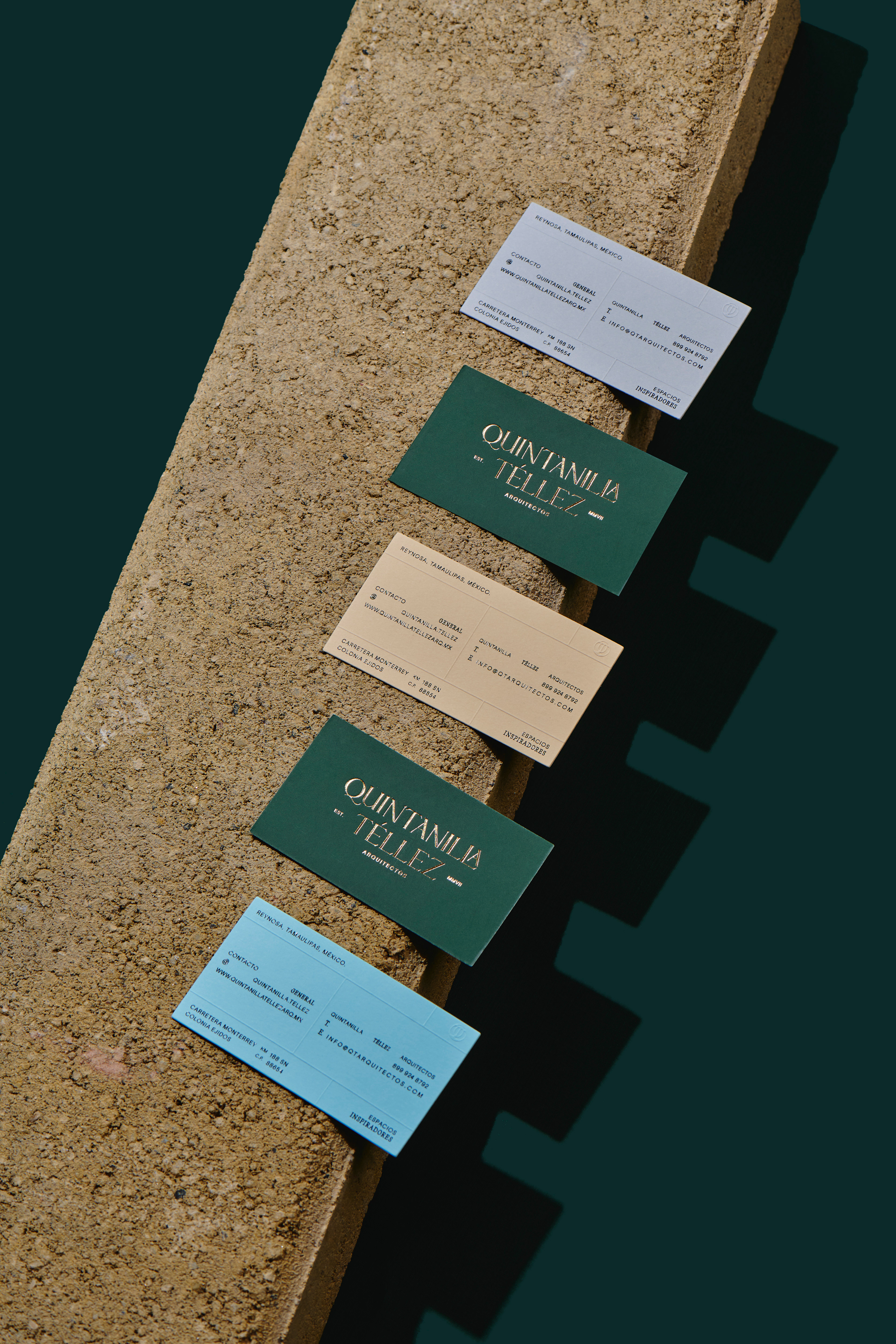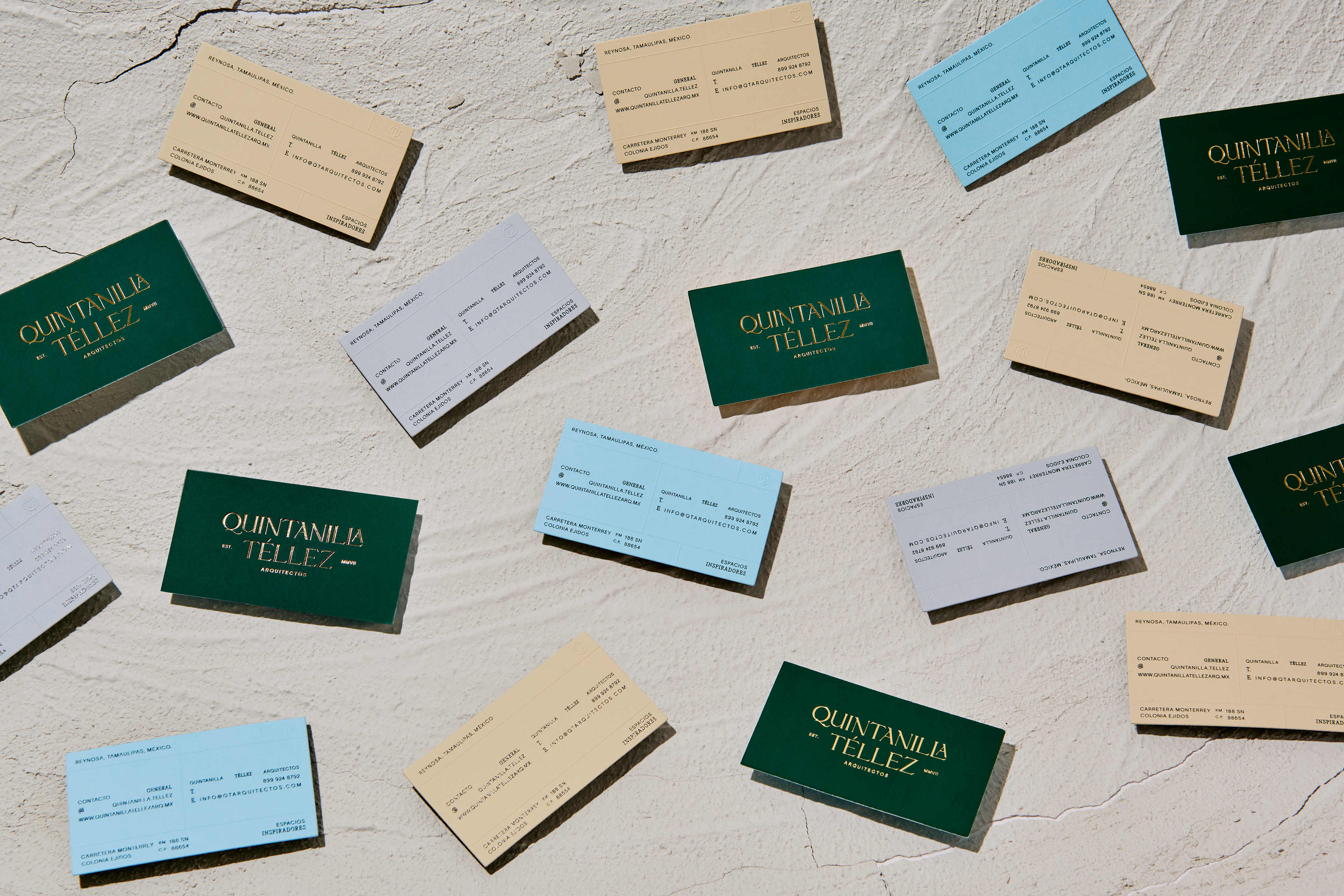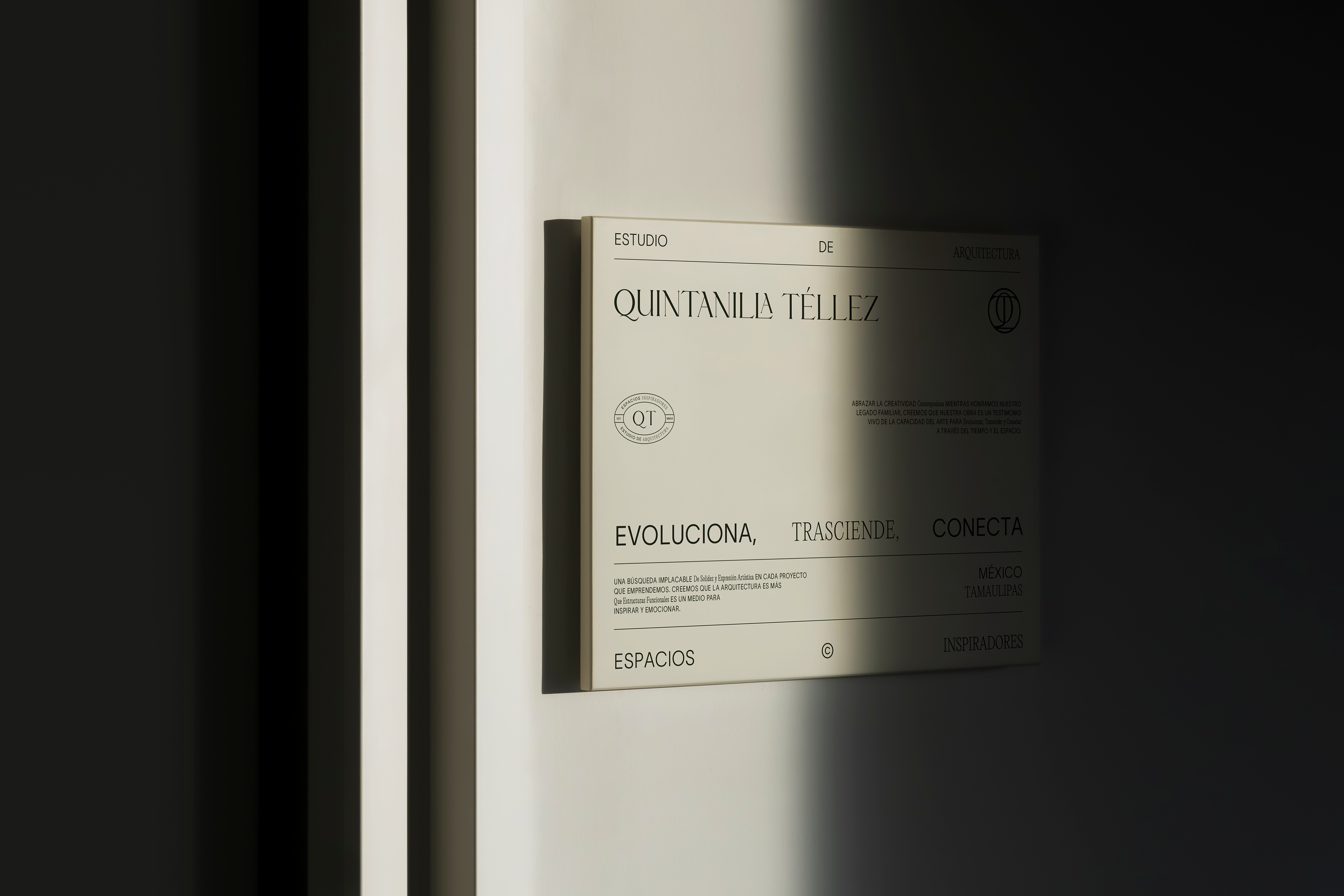 Quintanilla Téllez is an architecture studio based in Tamaulipas, Mexico, where the profession intertwines with a contemporary vision of space. The identity project sought to build a solid brand—one that honors its legacy while opening the door to artistic projects and more expressive architectural narratives. The aim was to transform its visual presence into a language that respects tradition while confidently pointing toward new horizons.